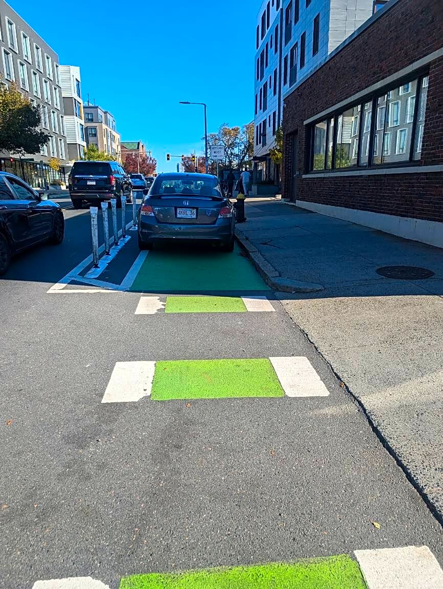 Intersection Of Sinclair Rd And N Beacon St, Brighton, MaParking in bike lane