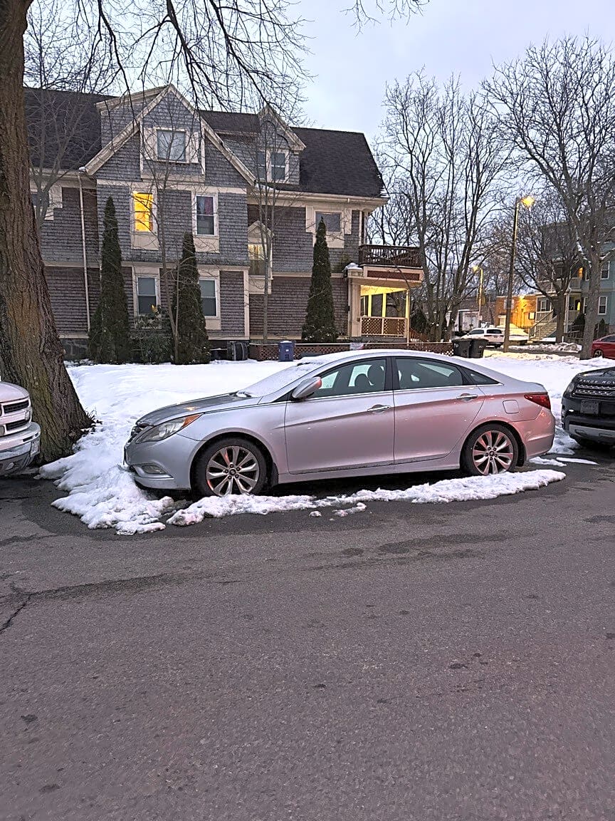 3 Roslin St, Dorchester, Ma, 02124Silver Hyundai Sonata MA plate 7DX274 parked on Roslin st. at corner of Roslin and Washington for over 6 weeks. Hasn’t been moved since before the last storm in January. It is also missing passenger side mirror.