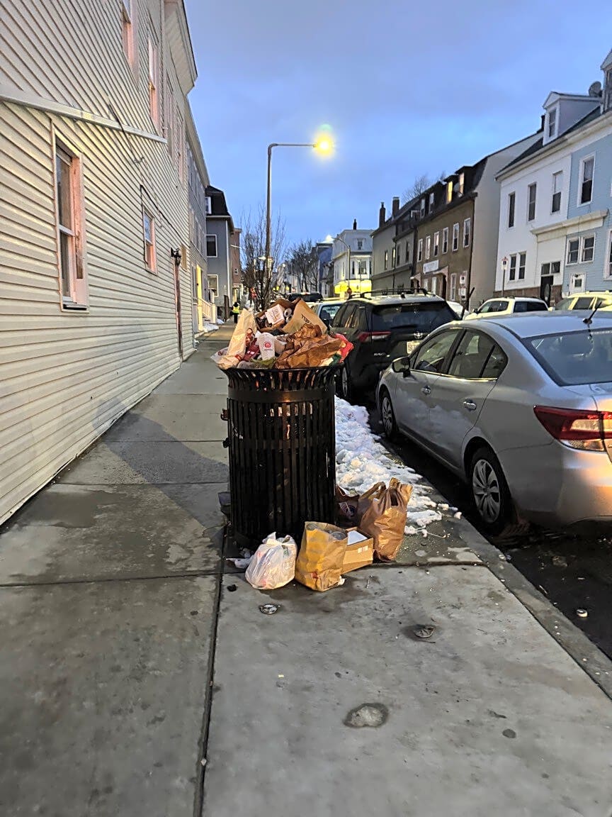 Intersection Of Brooks St And Saratoga St, East Boston, MaOverflowing trash can