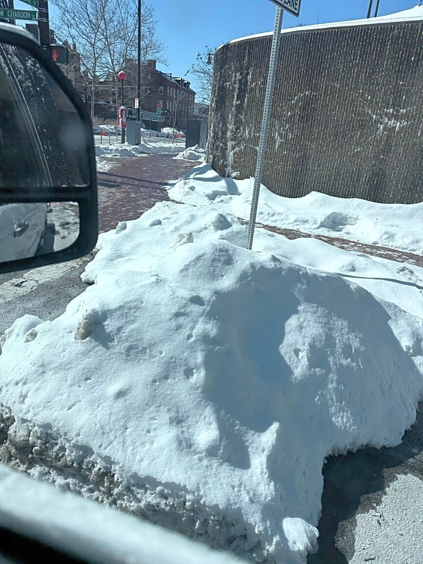 Intersection Of Cambridge St And New Chardon St, Boston, MaPile of snow in right turning lane. You can’t turn bc of the pile.