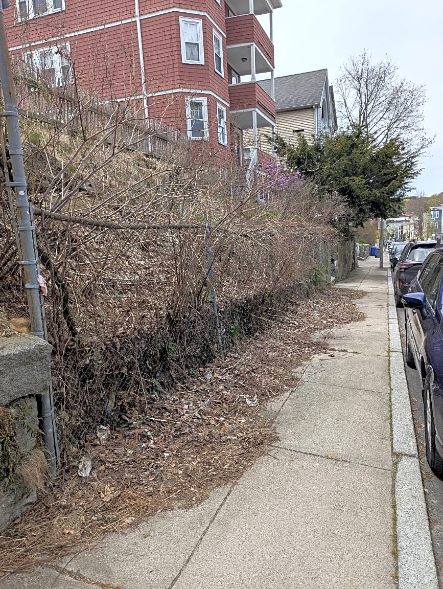 81 Woodlawn St, Jamaica Plain, Ma, 02130Sidewalk covered in debris. Property totally ignored for YEARS. 81 Woodlawn.