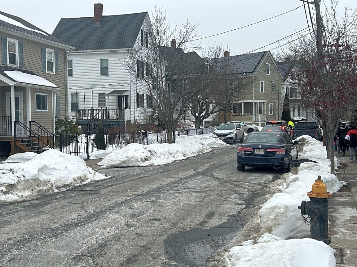 Intersection Of Wright St And Hawthorne St, Roslindale, MaAgain PLEASE clear snow on Hawthorne. During school dismissal or drop off the roads are hardly accessible and the teachers and residents have nowhere to park because the parking lot is not sufficient for teacher parking. Additionally cars are parking where it says no parking 7 AM to 5 PM that is because they cannot park on the side of the street where there are mounds of snow preventing appropriate street parking.