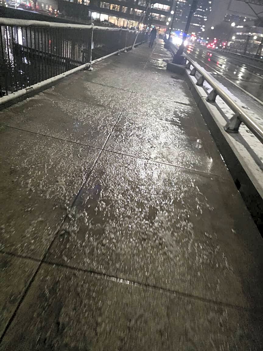 Intersection Of Summer St And Dorchester Ave, Boston, MaIcy bridge, no salt