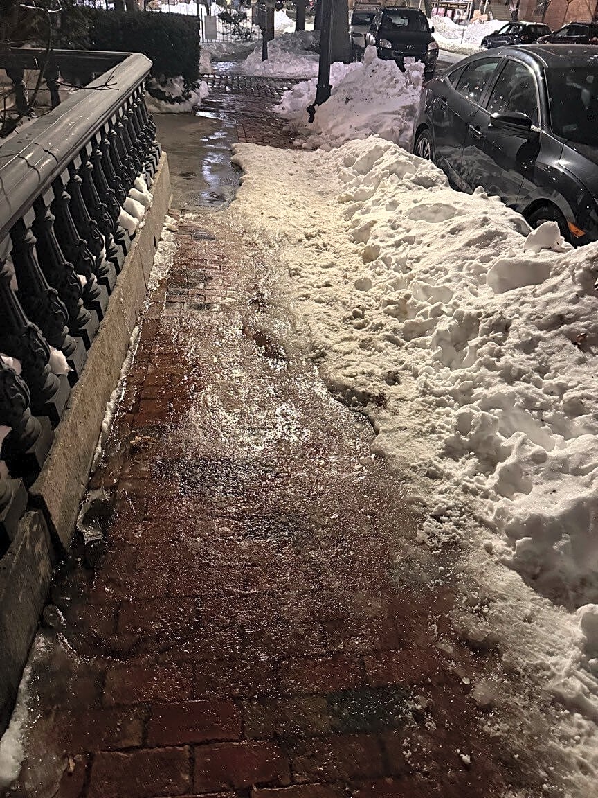 5 Rutland Sq, Roxbury, Ma, 02118Dangerous sidewalk conditions. Has been a sheet of ice for two weeks since the storm. I walk this route every day and nearly skip. It’s so bad and has heavily foot traffic. Please ticket them.