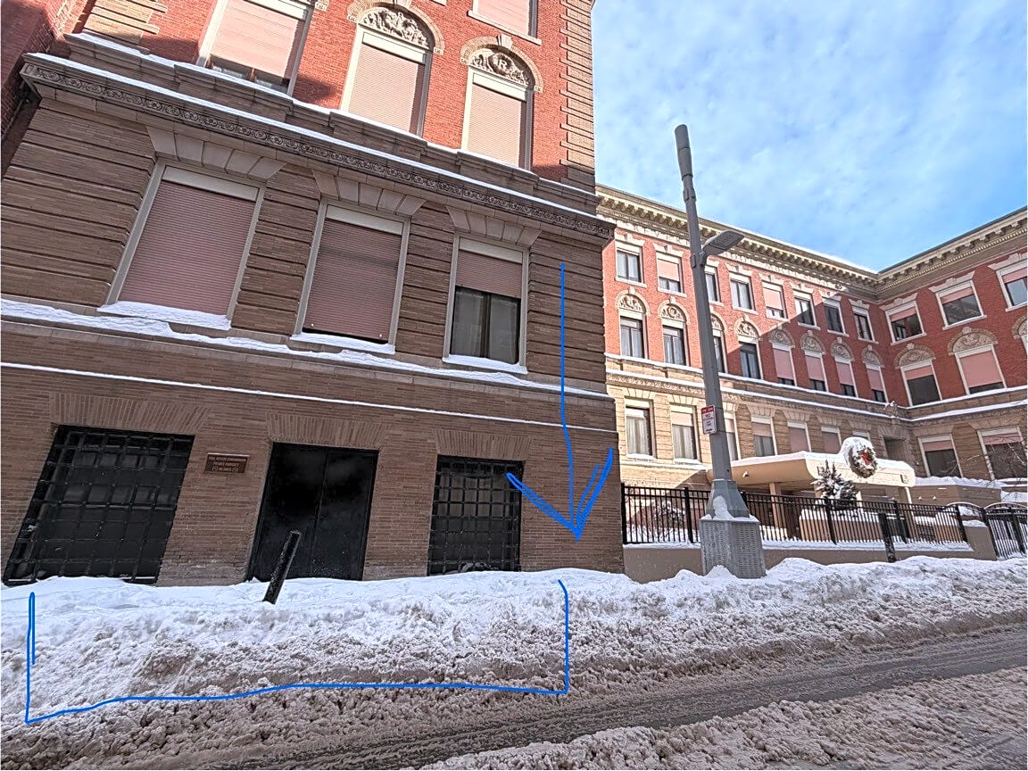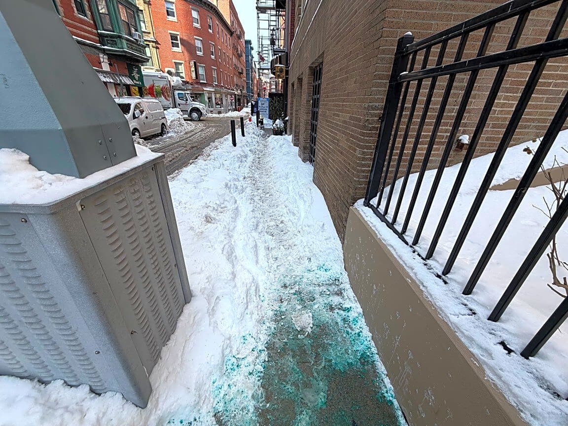 61 Prince St, Boston, Ma, 02113Paul Revere Condominium did not shovel or salt 1/3 of the sidewalk in front of their building. See blue arrows on photo for reference. Elderly can not walk by and are at a high risk of falling.