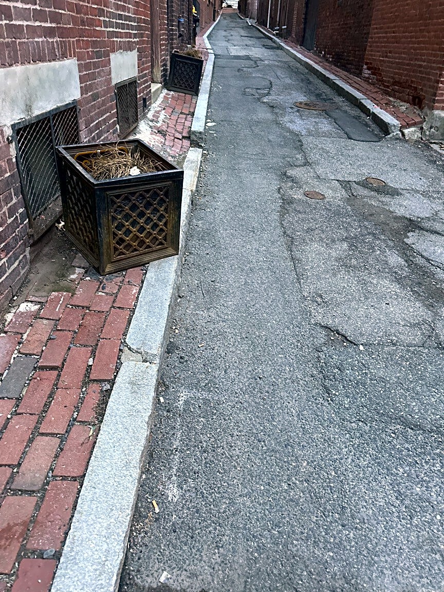 25 Ridgeway Ln, Boston, Ma, 02114Planter protruding into roadway. Please ticket owner for occupying city property without a permit and blocking the roadway