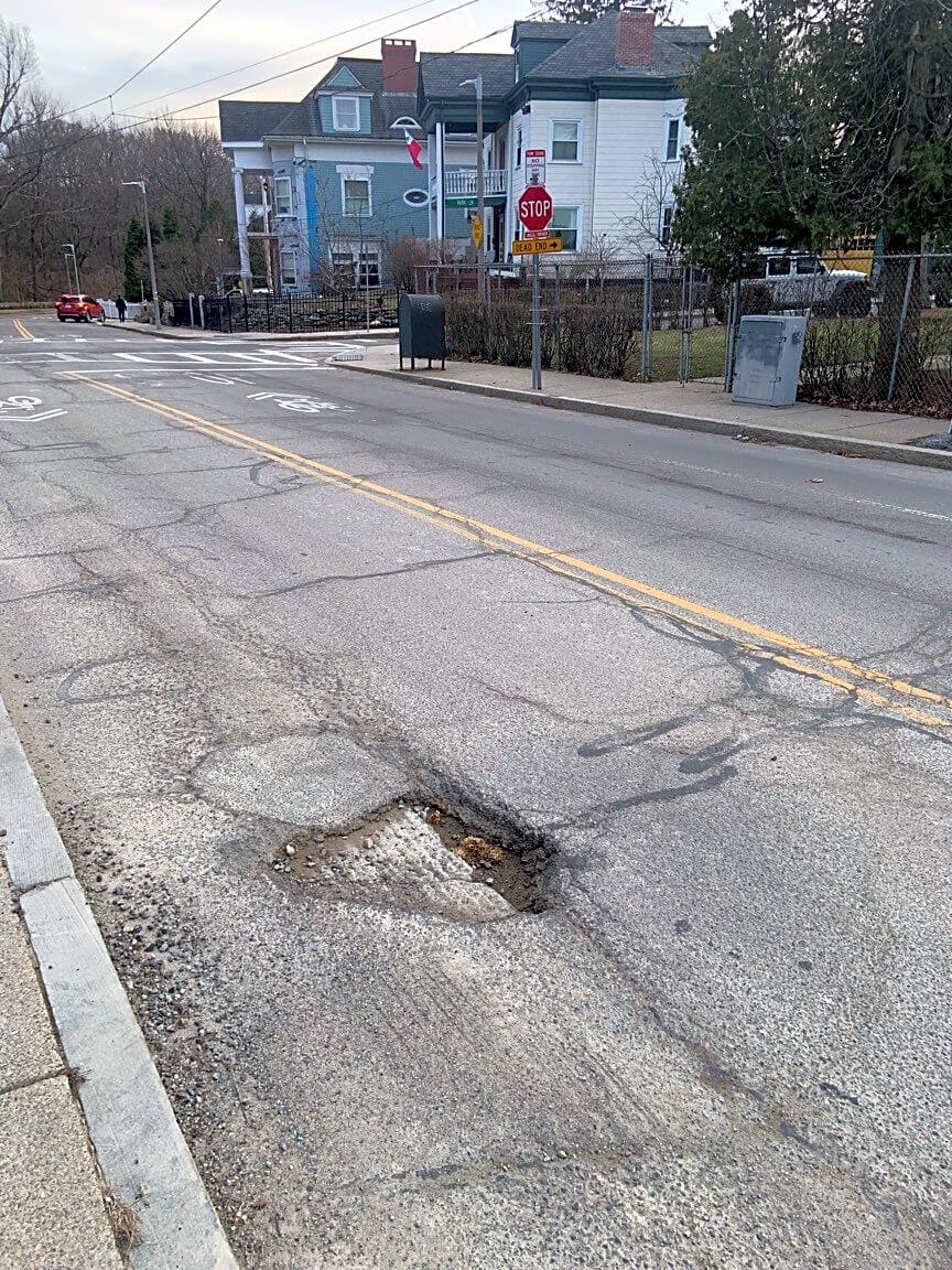 489 Walnut Ave, Jamaica Plain, Ma, 02130Large pothole in street across from 489 Walnut Ave