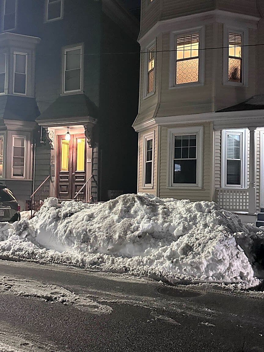 72 Hancock St, Dorchester, Ma, 02125Please arrange for the removal of the snowbank in front of these homes, as it is creating parking difficulties and restricting access for cars and buses on the street.