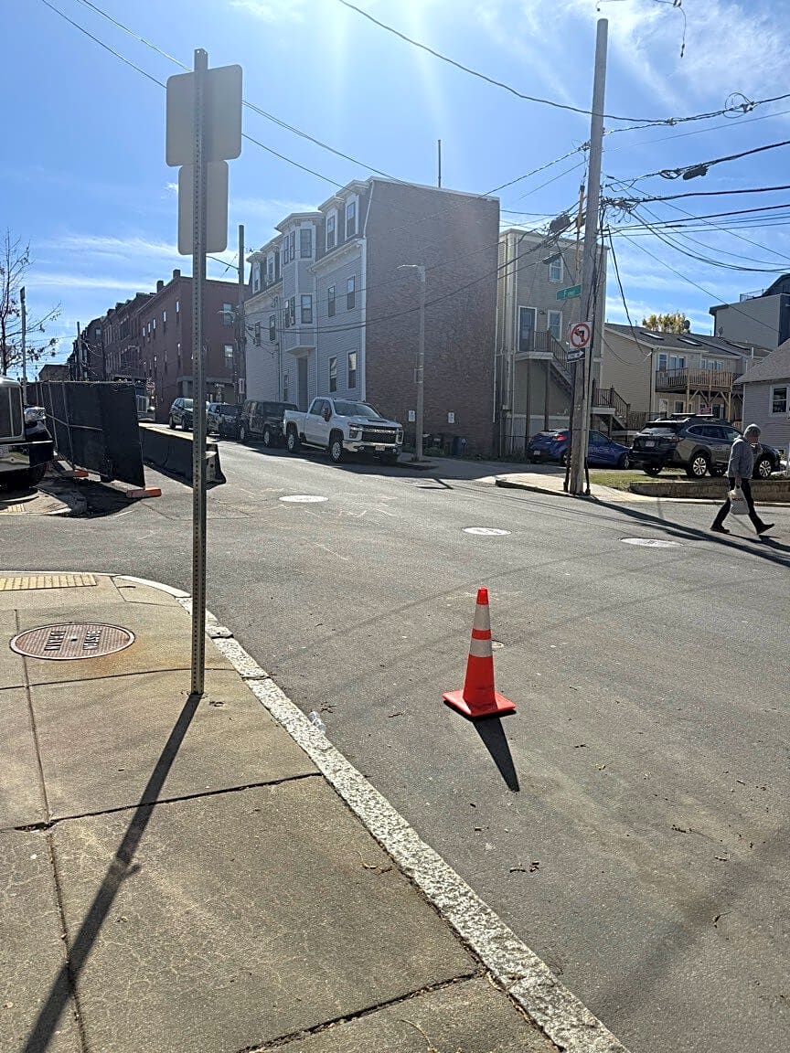 Intersection Of Bolton St And F St, South Boston, MaConstruction team next to my house putting out cones as spacers constantly. They already have 5 spots with permits and this is not one of them.