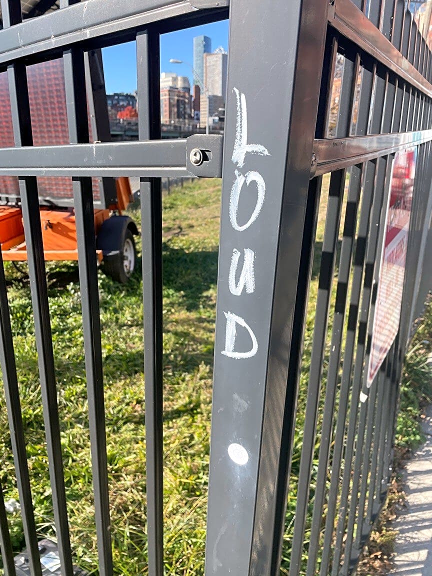 Graffiti on fence by Cortes st
