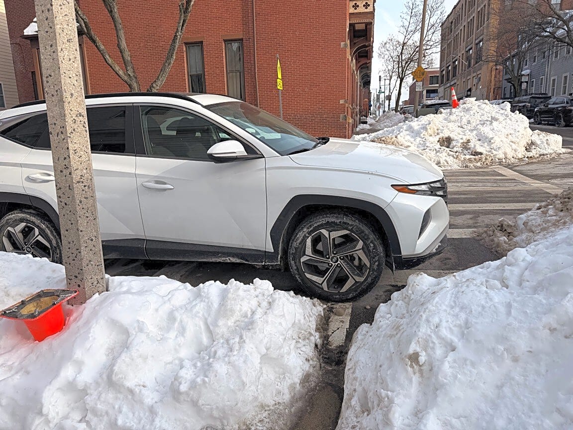 403 W Fourth St, South Boston, Ma, 02127Car parked in front of hydrant and in the cross walk - blocking the only walkable path they were there during the storm moved for a couple days and then came back. It’s Pennsylvania license plates.
