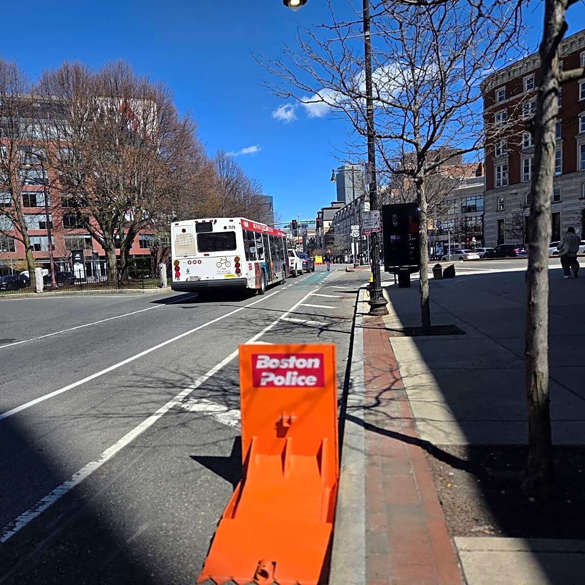 560 574 Commonwealth Ave, Boston, Ma, 02215The block that was used for the marathon is still in the street on Commonwealth Ave East bound outside the Citizen Bank. It's blocking the bike lane and the right turn lane to Beacon St