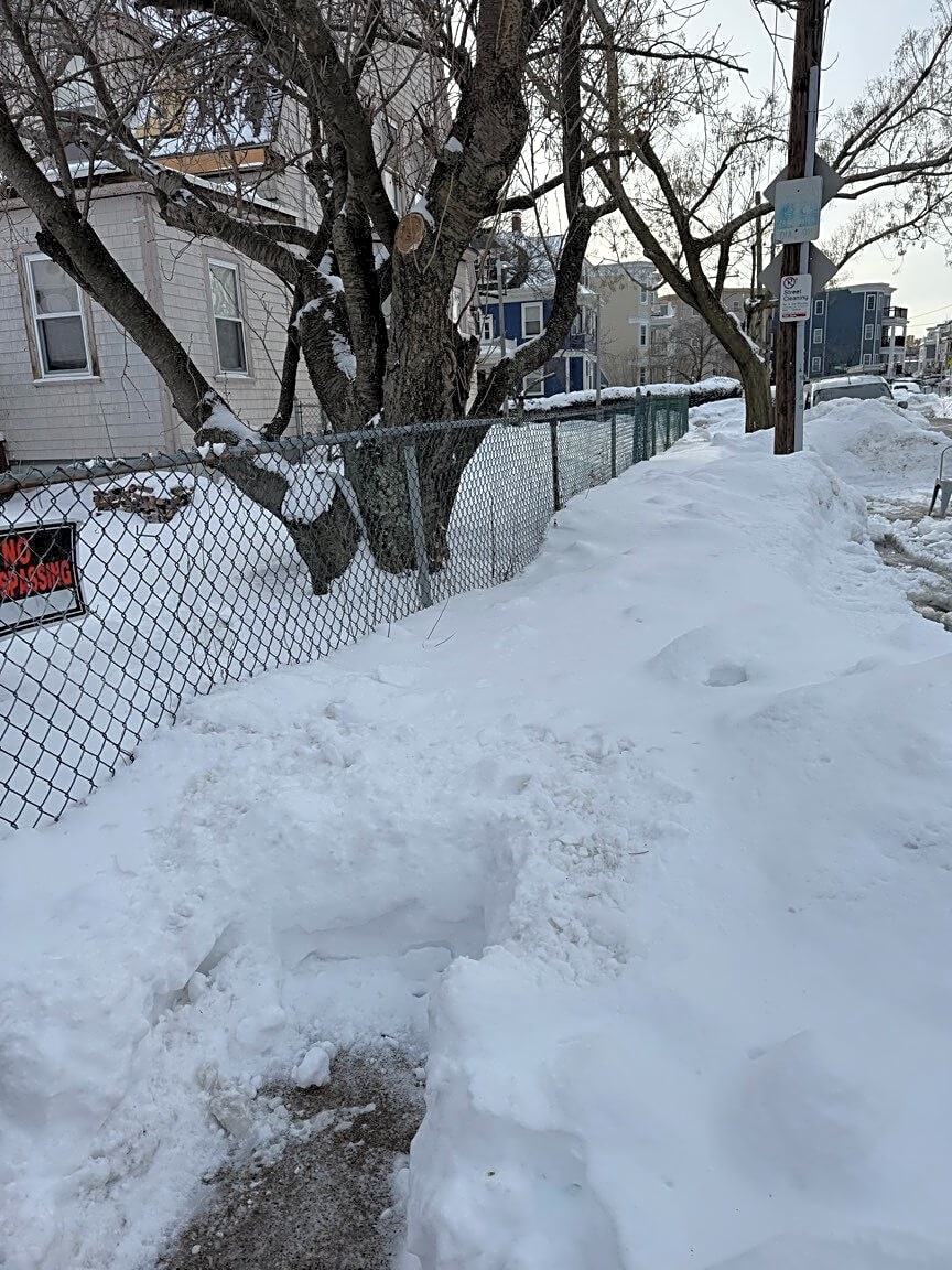 22 Florida St, Dorchester, Ma, 02124Sidewalk not shoveled and impassable forcing pedestrians into the street. Enough is enough, it’s been days and they have done nothing to clear the sidewalks!!