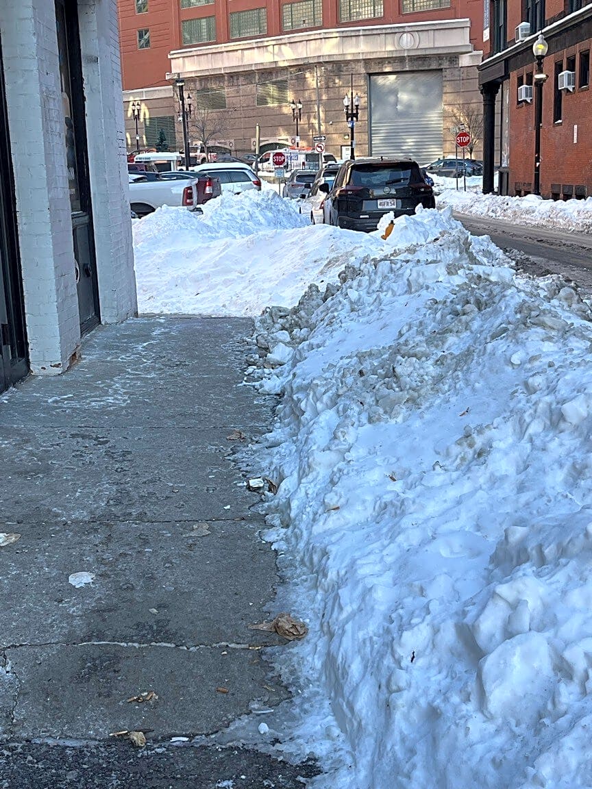 2 24 Edinboro St, Boston, Ma, 02111City hasn’t finished removing snow on Edinboro. Pedestrians get blocked in on all sides! The sidewalk on the other side is closed due to dangerous icicles. And only the middle is cleared on this side. Please come and clear the PUBLIC walkways so people can get around. Otherwise you are forcing pedestrians into the street! Lawsuit waiting to happen.