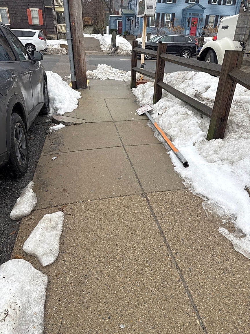 Intersection Of Lochstead Ave And Centre St, Jamaica Plain, MaNo stopping emergency vehicle access sign knocked over