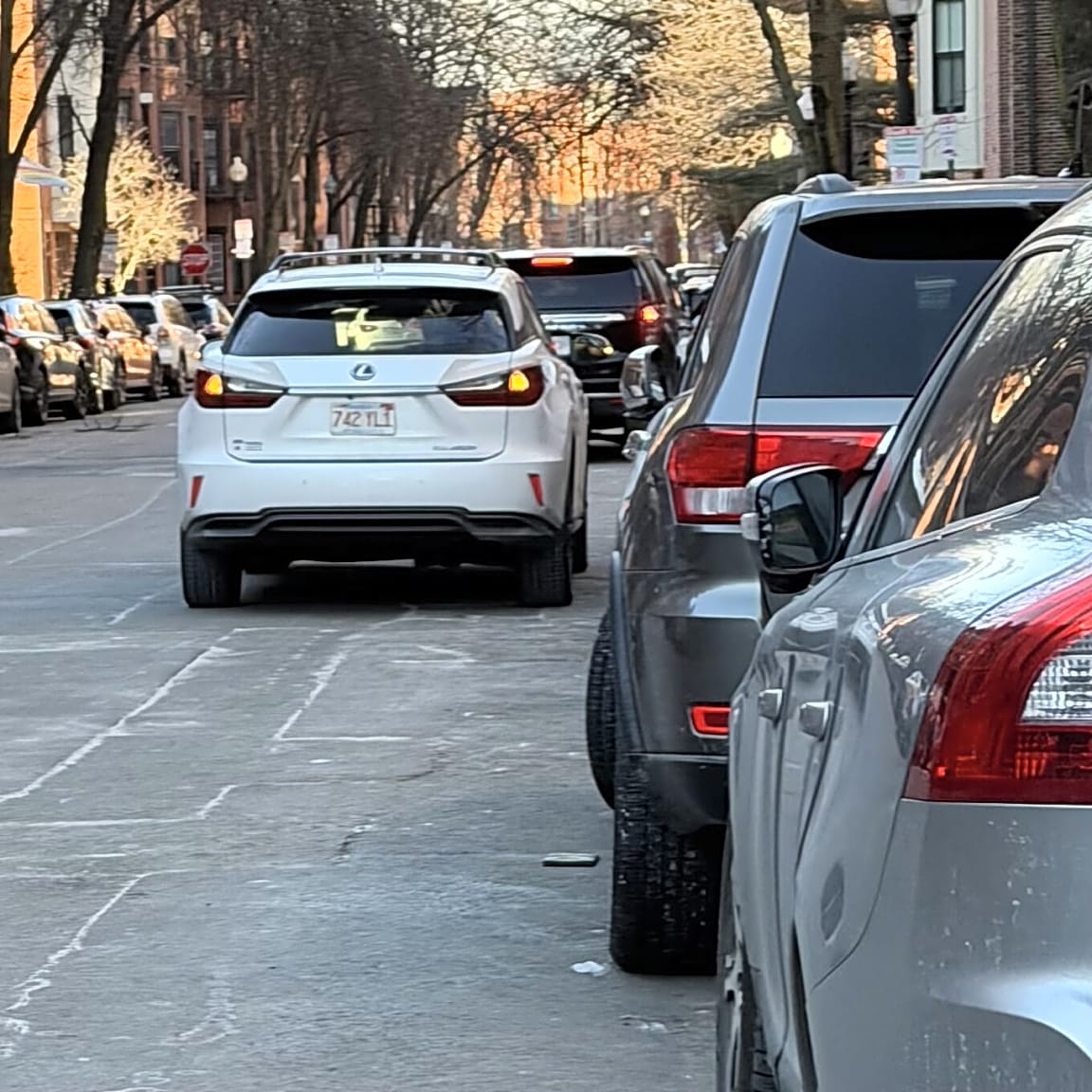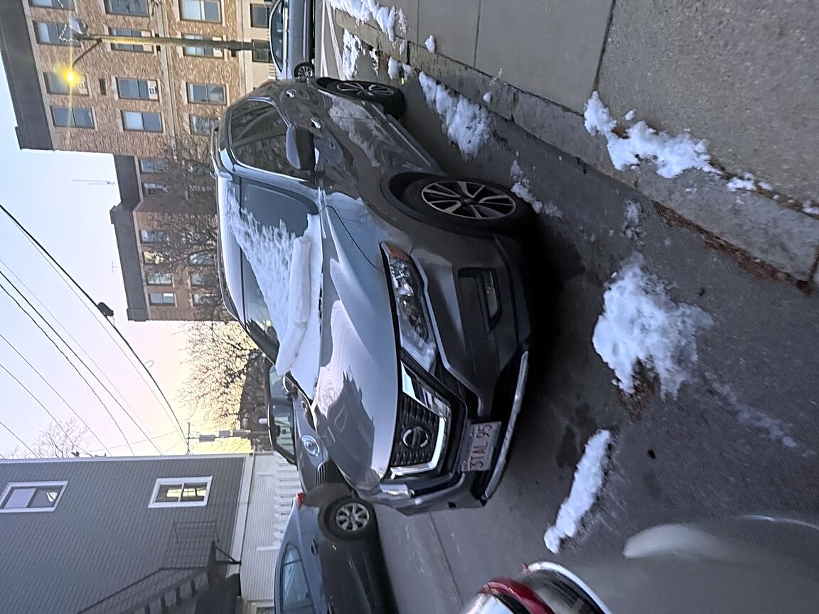 11 Thomas Park, South Boston, Ma, 02127Blue/gray Nissan rogue hasn’t moved in 2 weeks, also does not have visible resident parking sticker and is taking up 2 parking spots on the street. License plate 3tal95