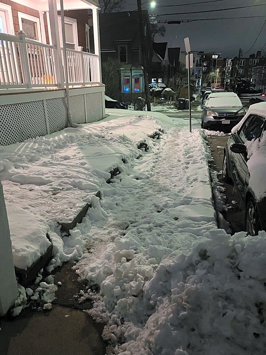 Intersection Of Thomas Park And G St, South Boston, MaG street/thomas park south Boston. Top of hill and hill sidewalks are extremely icy and dangerous