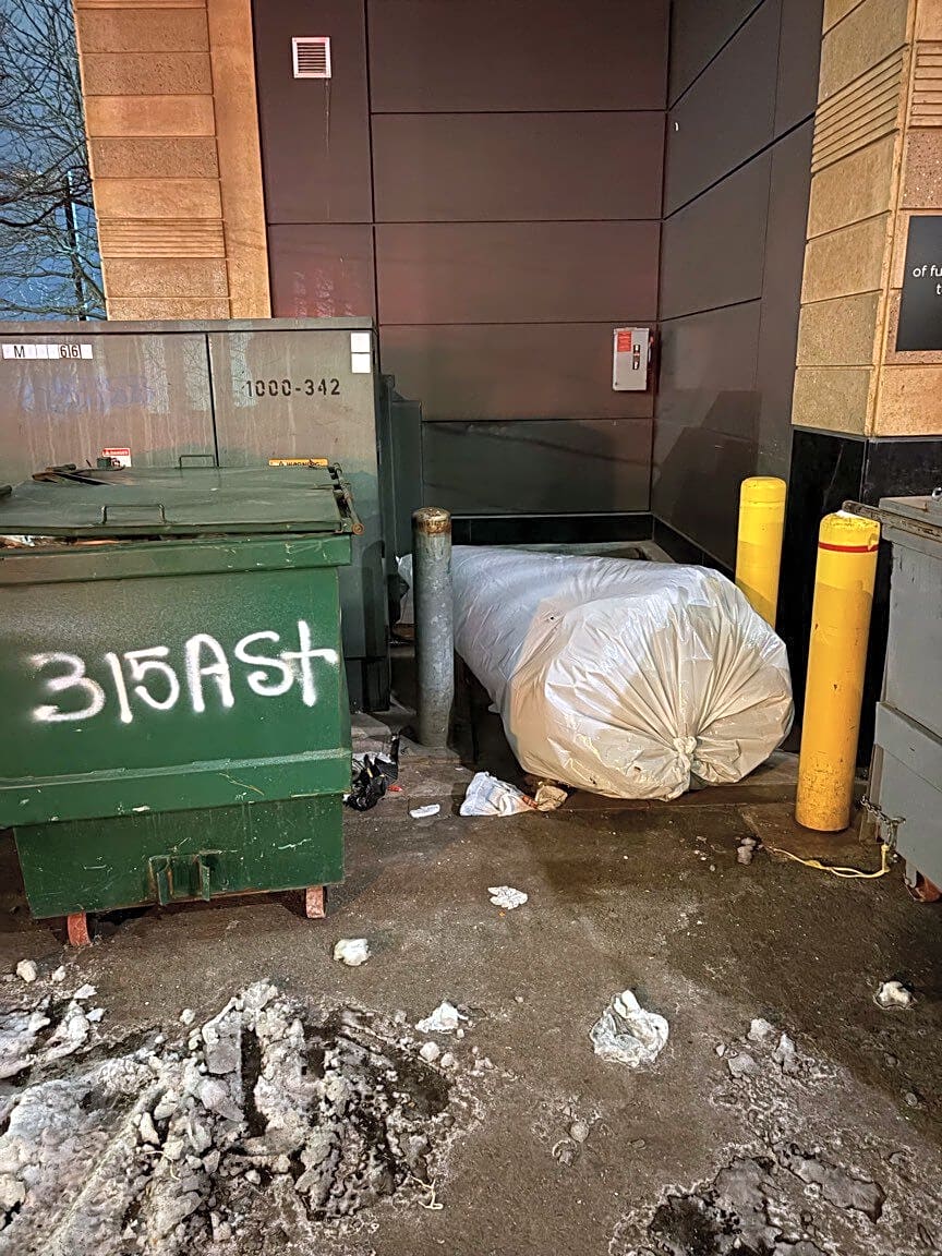 68 Newmarket Sq, Roxbury, Ma, 02118The operator of a waste management trash truck is repositioning the load in the middle of the roadway