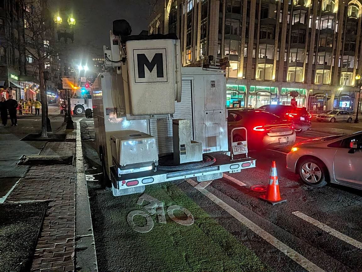 Intersection Of Berkeley St And Boylston St, Boston, MaContractor blocking bike lane