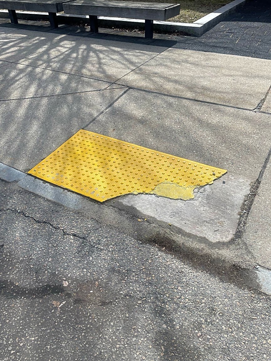 1354 1356 Blue Hill Ave, Mattapan, Ma, 02126Handicap ramp detector damaged and detached in library parking lot
