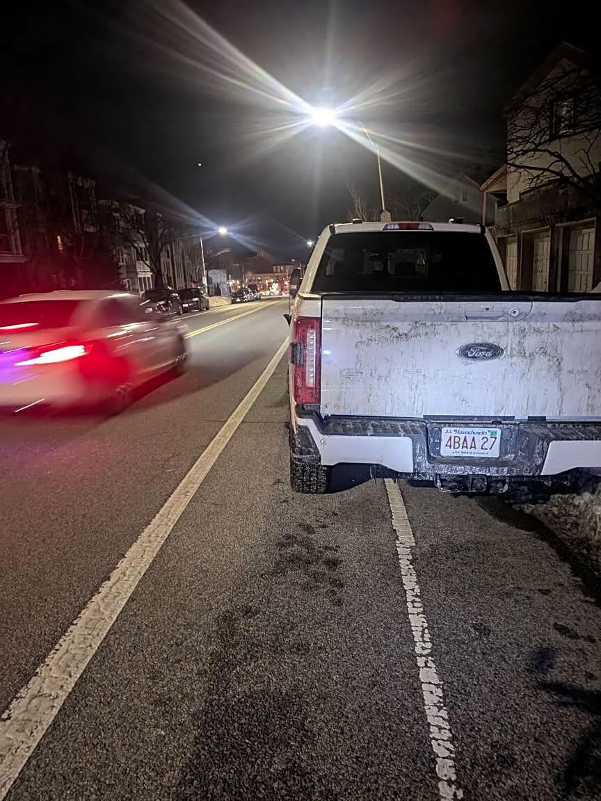 148 Belgrade Ave, Roslindale, Ma, 02131Vehicle parked partially in the bike lane instead of shoveling out the parking space.