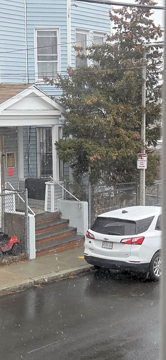 10 Radnor Rd, Brighton, Ma, 02135Silver sedan parked over driveway curb. Plate is 6MSC77