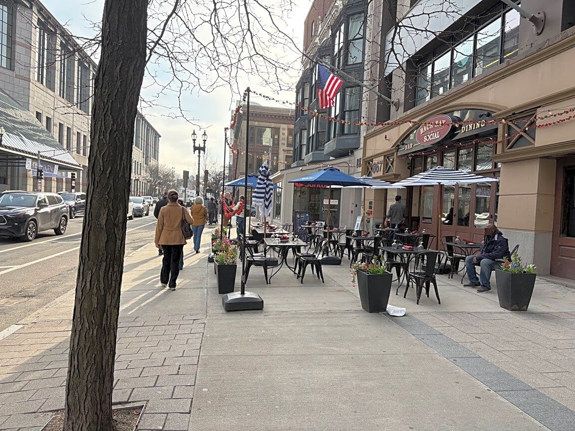 883 885 Boylston St, Boston, Ma, 02116Restaurant taking up most of sidewalk with tables and planters | Case (SR) Type: [Outdoor Dining] Referred To: [OUTDOOR DINING]