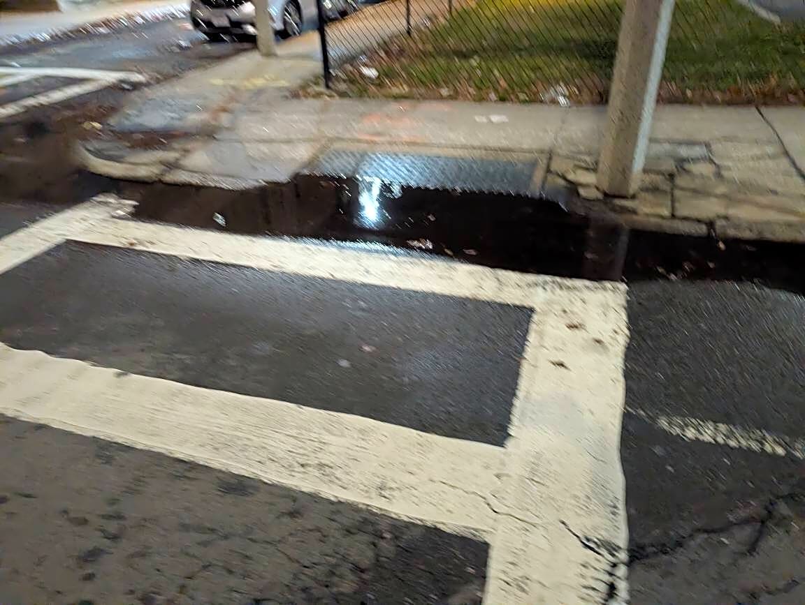 Intersection Of D St And W Fifth St And Flaherty Way, South Boston, MaThe crosswalk at D and 4th St in Southie tends to flood on the ramps on the corner nearest the grass and the Labouré center