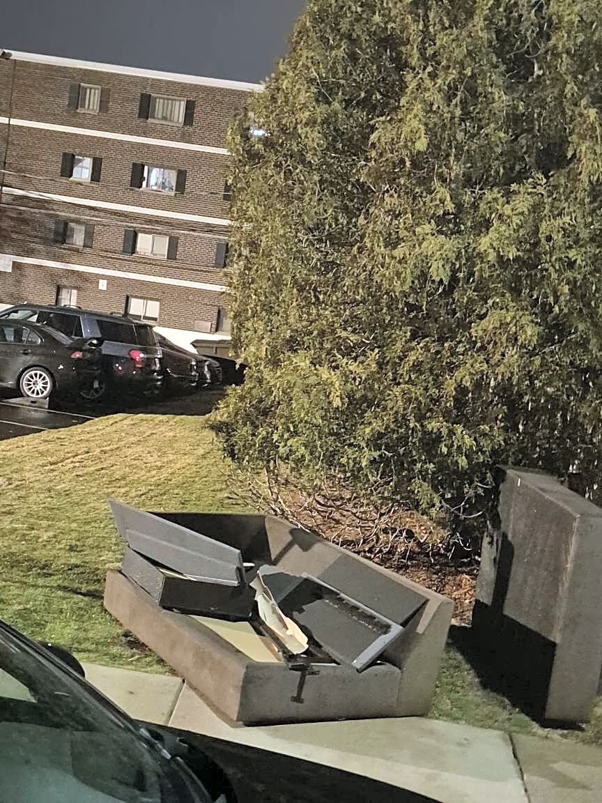 Please send to code enforcement not in property point furniture must be on fron of dumpster. 3/26/26 is on Saybrook st Brighton