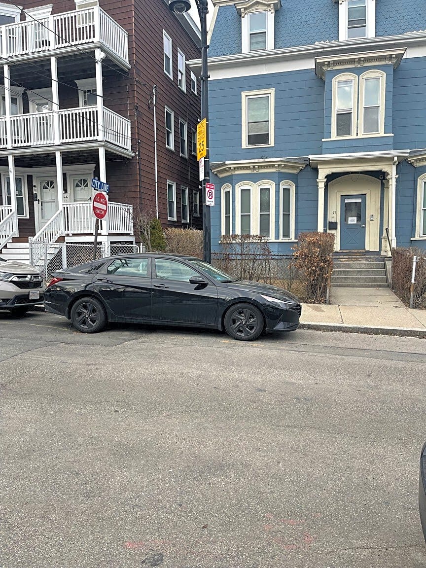 868 Blue Hill Ave, Dorchester, Ma, 021242 lanes of cars double parked | How is the car parked illegally: [Double parked] Type of vehicle: [Car] Details: [Multiple cars. NFI] Make: [Unknown] Model: [4DR] Color: [Unknown]
