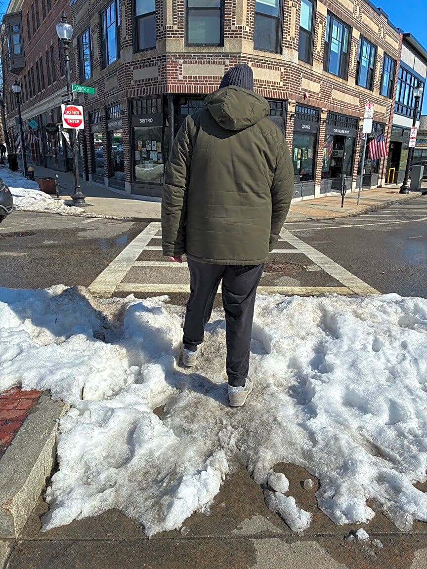 Intersection Of Corinth St And Belgrade Ave, Roslindale, MaSnow blocking crosswalk entrance