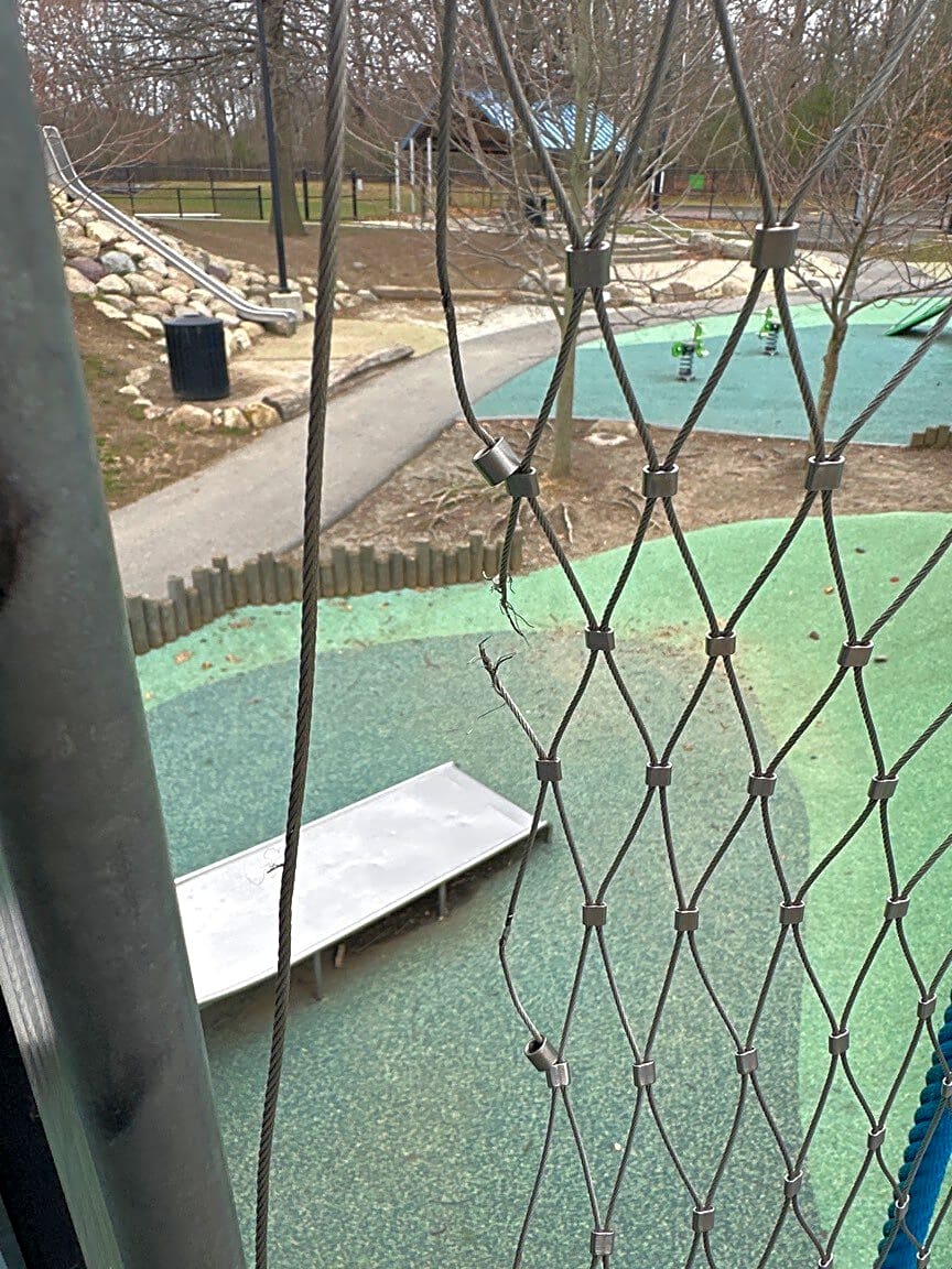 58P Wachusett St, Boston, MA 02130Fraying cables on both sides of the end of the bridge at Parkman Playground