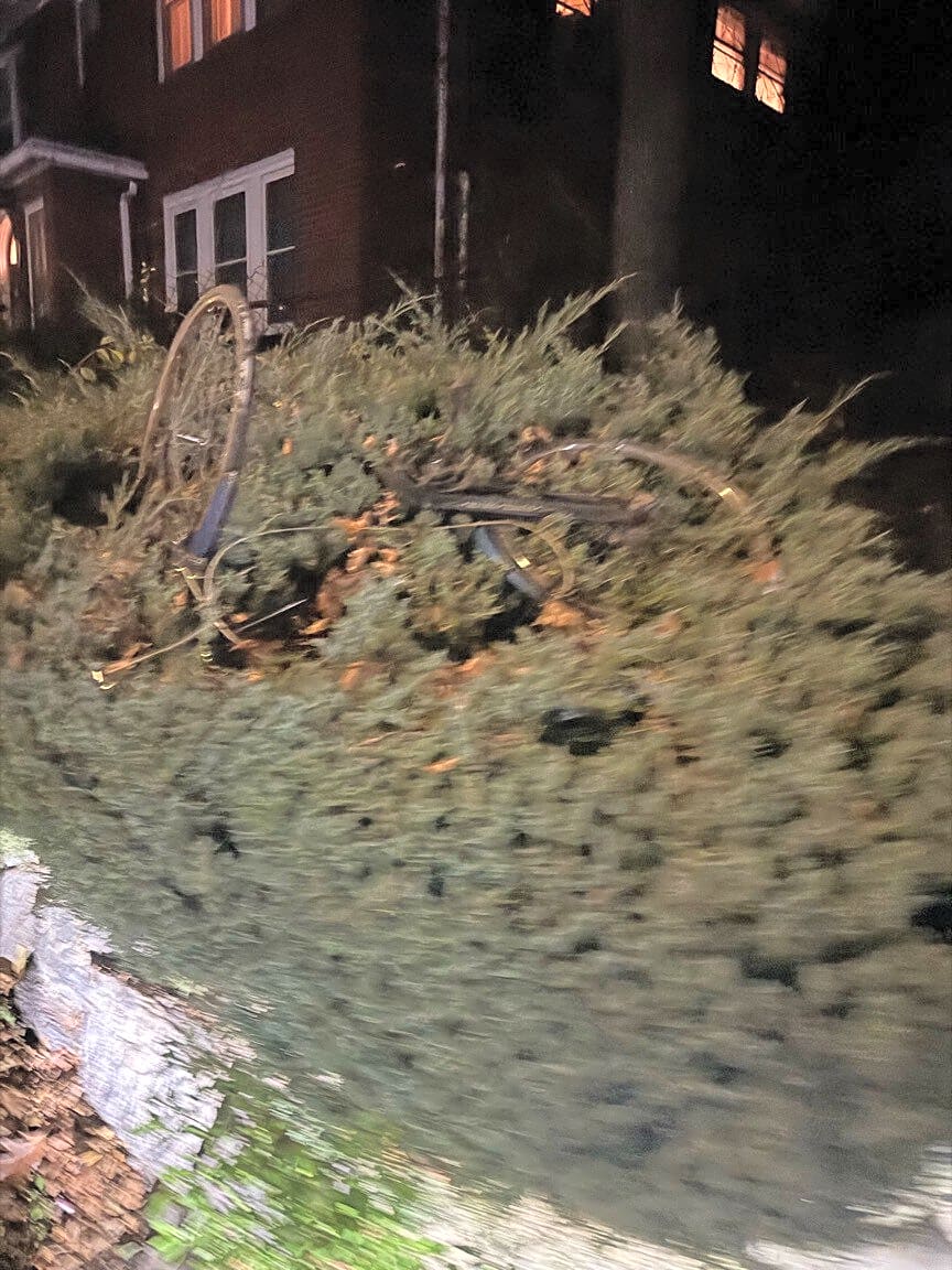 9 Ridgemont St, Allston, Ma, 02134Abandoned bike in bush