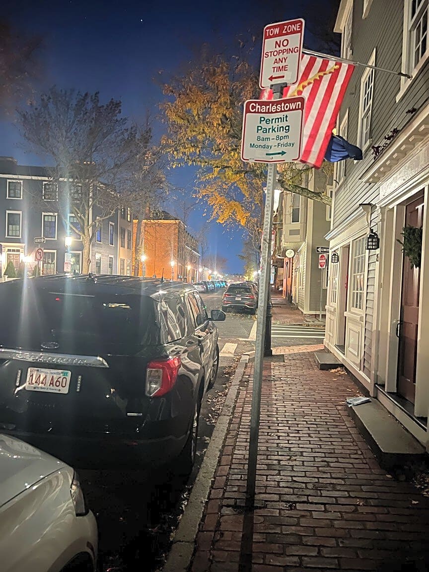 Intersection Of Pleasant St And Warren St, Charlestown, MaDangerous parking in illegal spot. This car is always parked here. Just cause they have grill lights doesn’t mean they are above the law. Tow this car.
