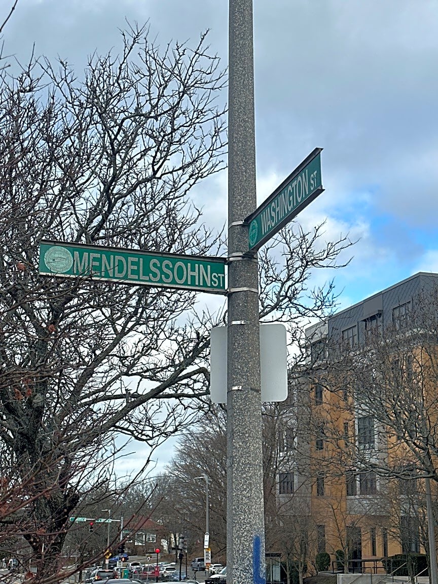 Intersection Of Mendelssohn St And Washington St, Roslindale, MaCorner of Washington street Mendelssohn street One way Signage down in Roslindale