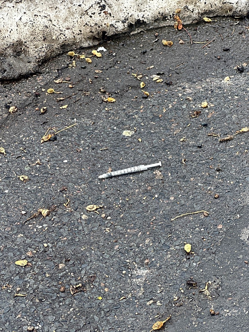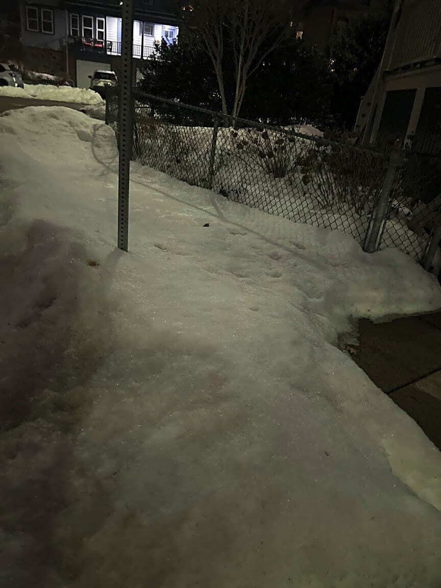 Intersection Of W Springfield St And Newland St, Roxbury, MaNeedle near the entrance to the rest parking lot of the Hurley School on W Springfield near Newland St