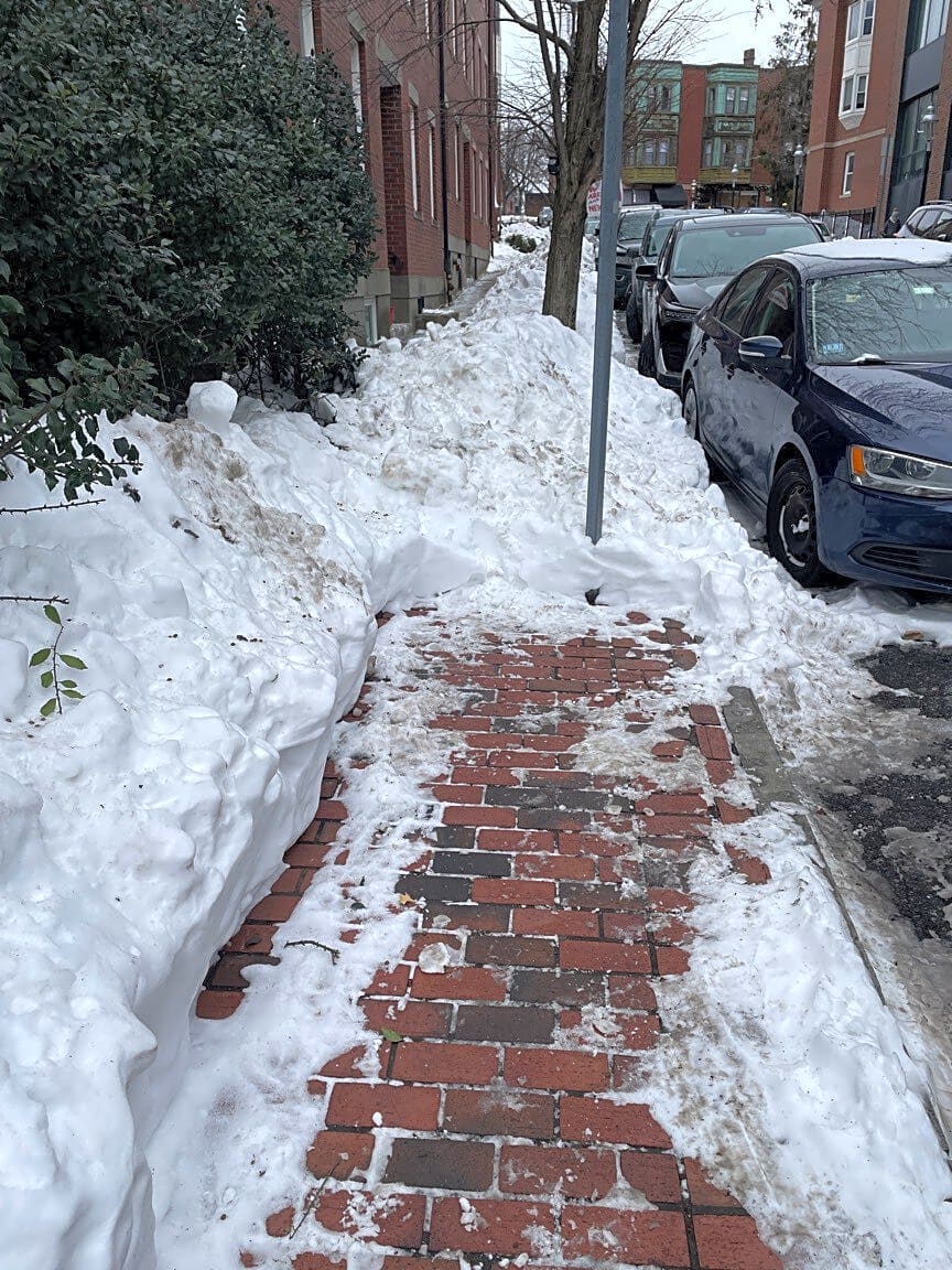 Intersection Of Chisholm Rd And Cornell St, Roslindale, MaSidewalk still unshoveled and impassable