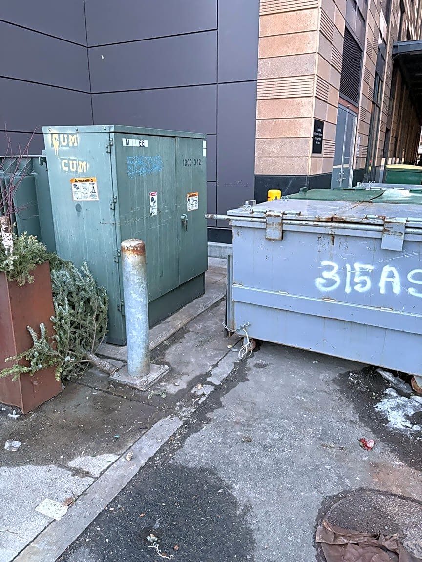 319 R A St, Boston, Ma, 02210Improper storage of trash / Christmas tree at the 315 on A apartment building. Equity management is fully responsible for this.