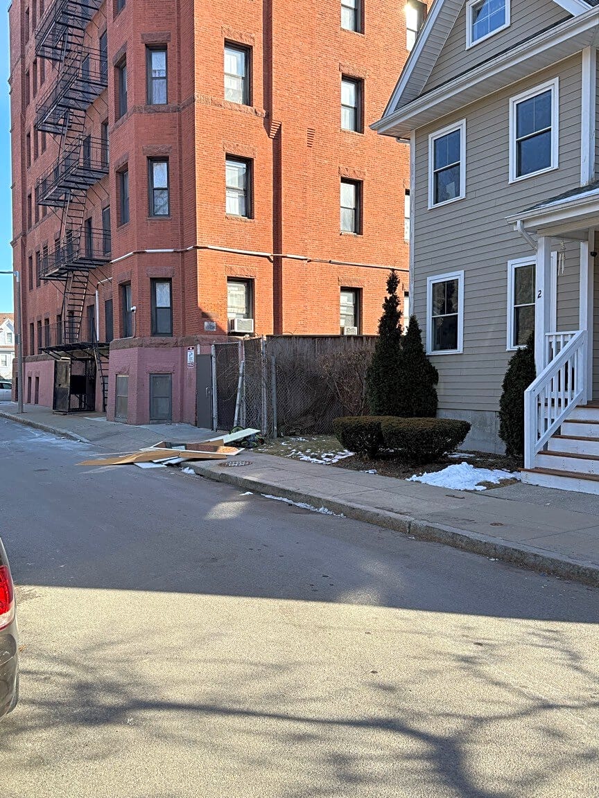 2 4 Nonquit St, Dorchester, Ma, 02125Housing debris in the road on Nonquit Street. Going to make it very difficult to plow with snow tomorrow