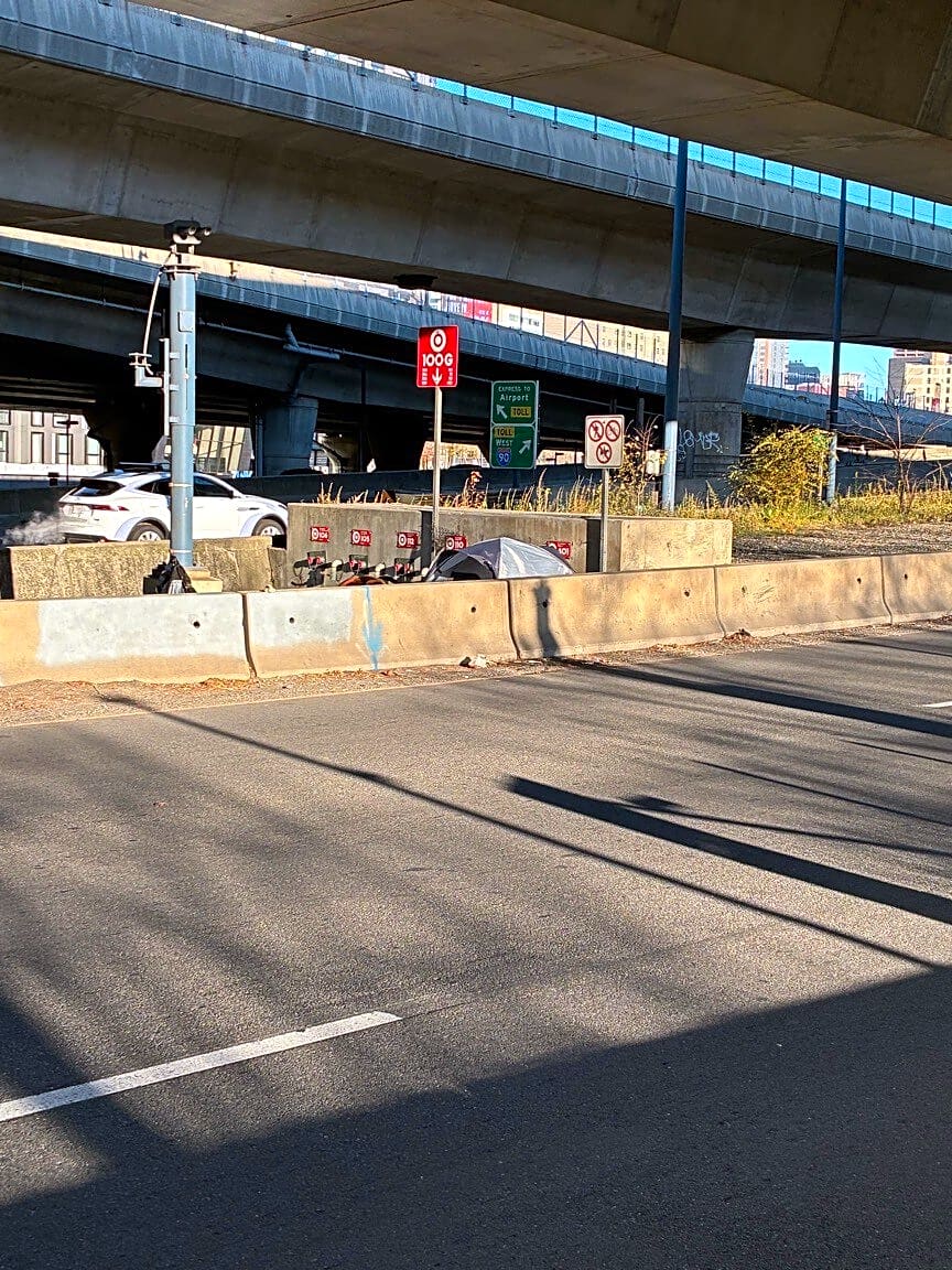 Intersection Of W Service Rd And Massachusetts Tpke E, Boston, MaEncampment unsheltered individuals