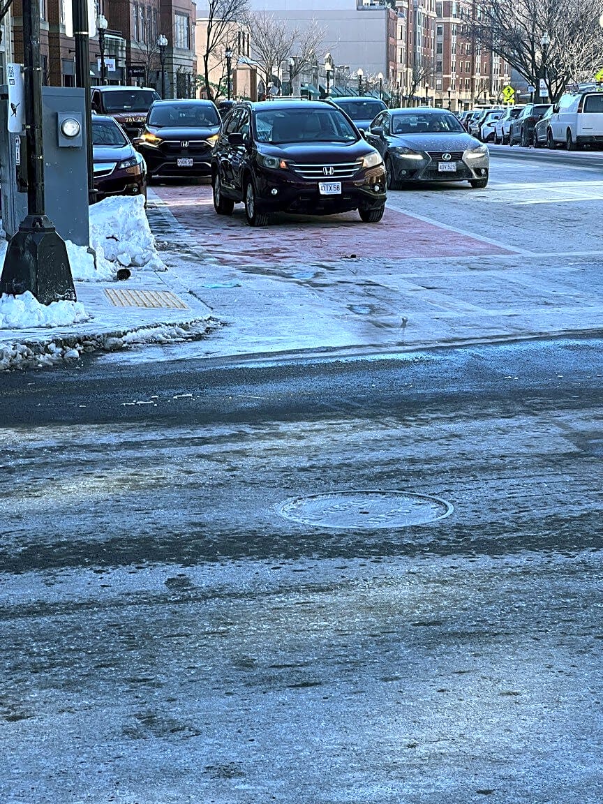 5073 5075 Washington St, West Roxbury, Ma, 02132Snow removal on Washington St; Widen Road. Cars parked on street make the right lane narrow.