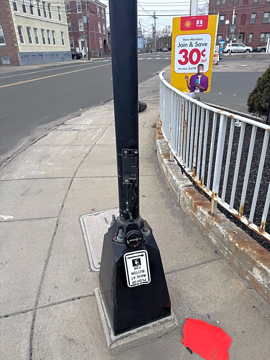 Intersection Of Cambridge St And N Harvard St, Allston, MaPedestrian call button destroyed.