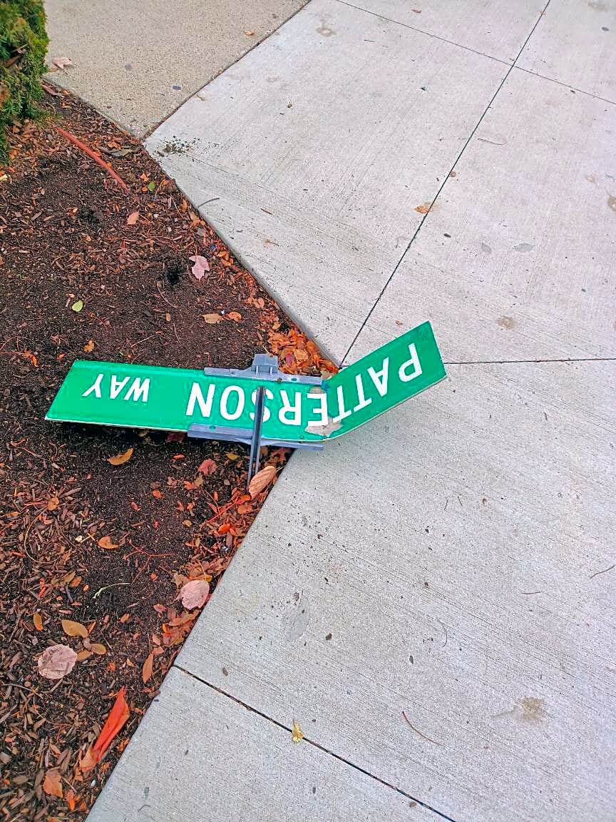 32 Rev Richard A Burke St, South Boston, Ma, 02127Sign hit and on floor on Patterson way and rev burke st