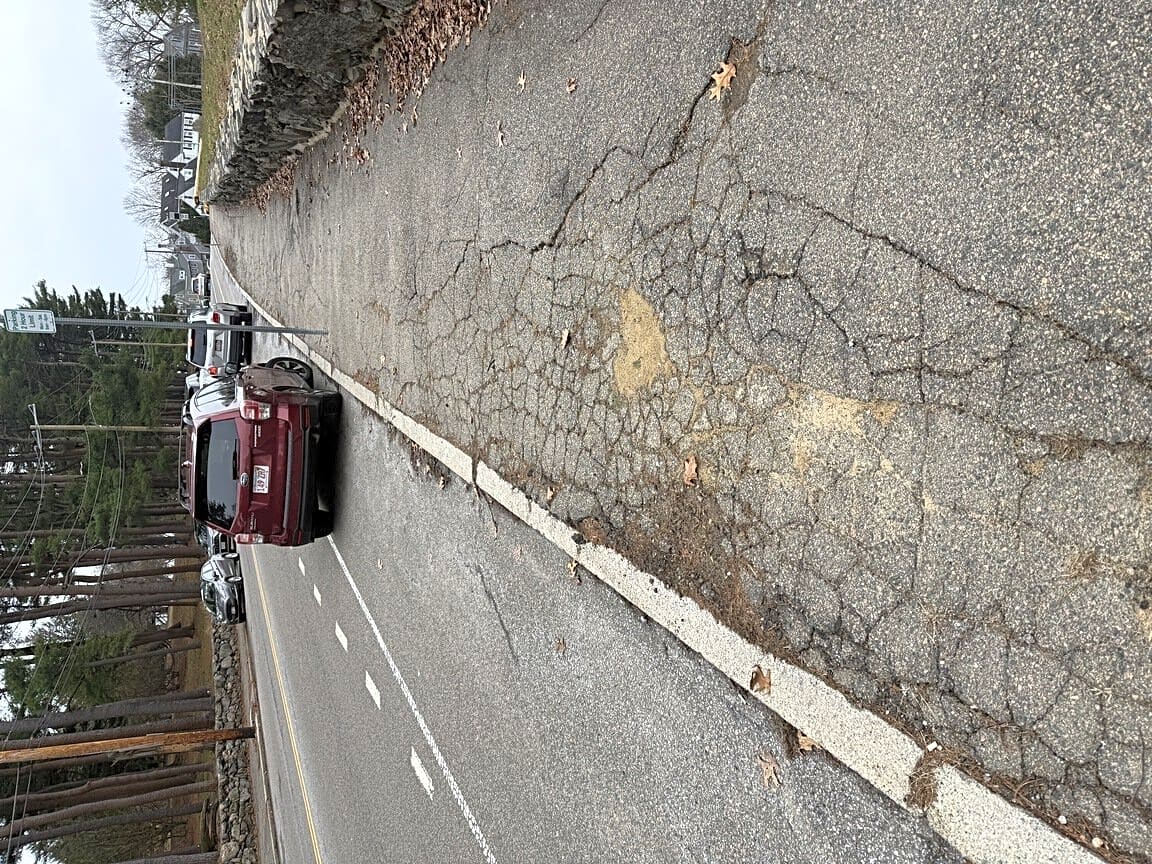 Intersection Of Walter St And Weld St, Roslindale, MaDestroyed sidewalk on Walter St between Flora way and Weld St in Roslindale. Almost impossible for a stroller or wheelchair to navigate down or up the steep hill with the sidewalk in this condition.