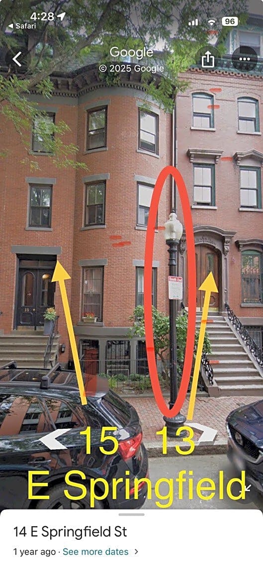 15 E Springfield St, Boston, MA 02118Hello, the sidewalk light in front of 15 E Springfield Street, Boston 02118 has been not working properly and the stretch of sidewalk is very dark. The light needs to be replaced. Thank You!