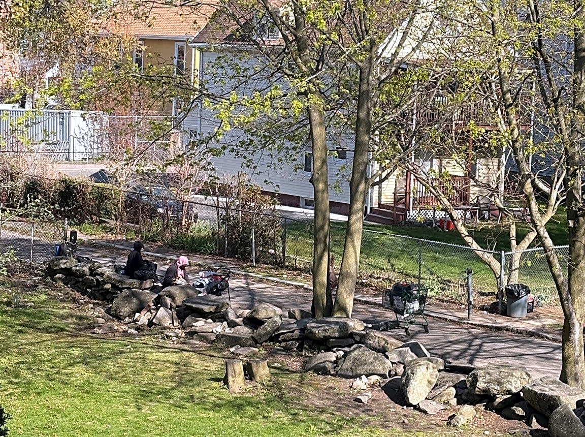 Encampment ,drug sales and use on Rockford Street, Roxbury.