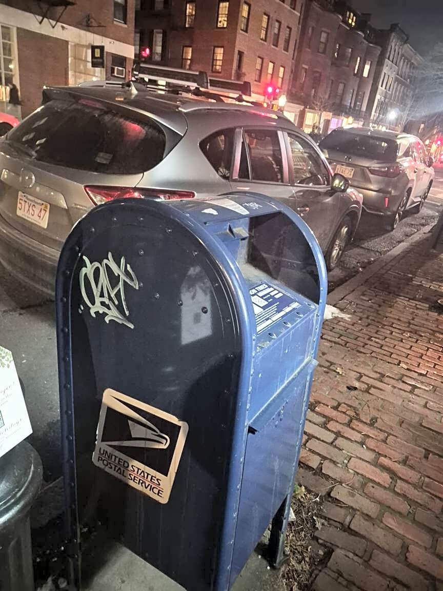 119 Charles St, Boston, Ma, 02114Tag ironically at post office| Graffiti location: USPS Mail Box| Offensive: No | Case (SR) Type: [USPS: Graffiti/Mailbox Issues] Referred To: [USPS: GRAFFITI/MAILBOX ISSUES]