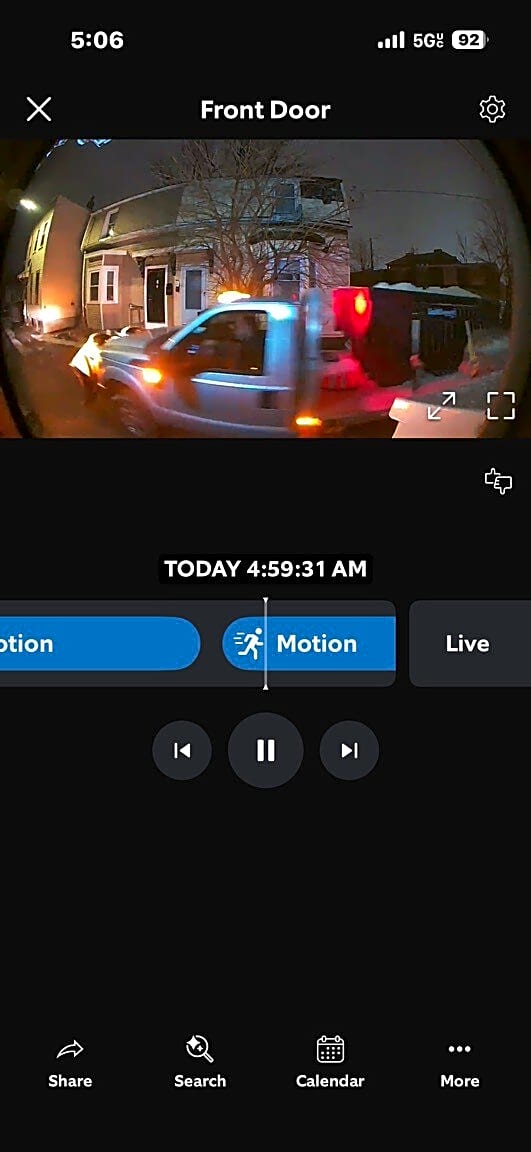 Red truck obstructing part of driveway