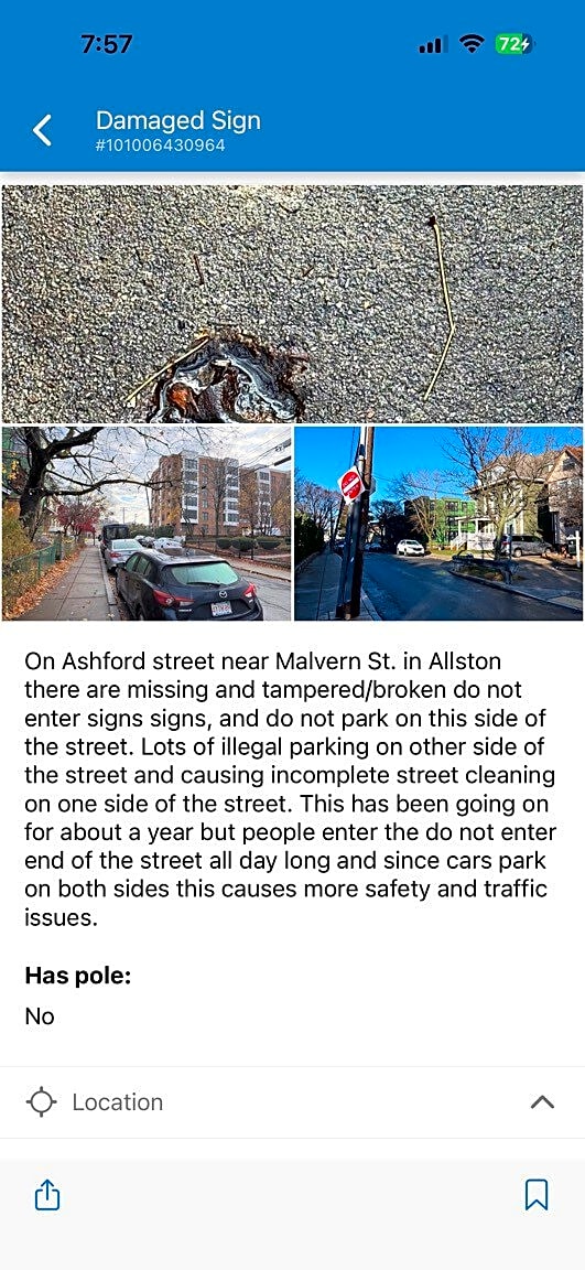 613 E Sixth St, South Boston, Ma, 02127White Ford Maverick Pick Up Truck parked for 7 weeks. | Make of the abandoned car: [FORD] Model of the abandoned car: [PU] Color of the abandoned car: [WHITE] License Plate number if available: [6APG88] License Plate State if available: [MA]