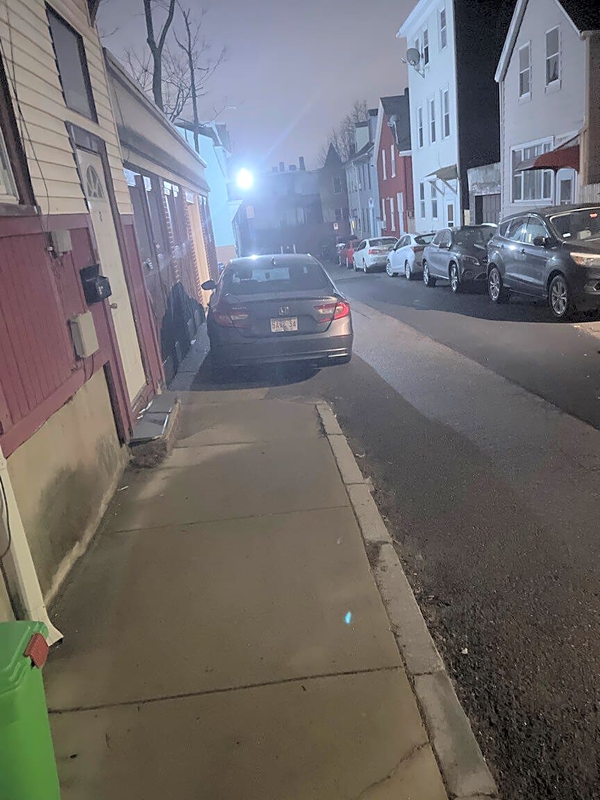 Intersection Of Marion Pl And Marion St, East Boston, Ma2 cars parked illegally on sidewalk/street
